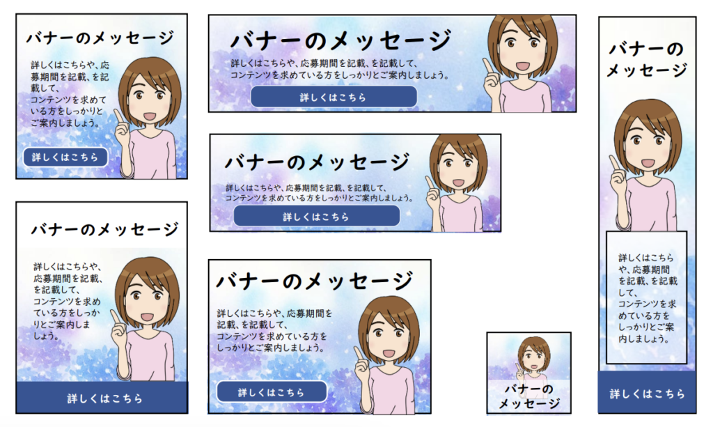 バナーのサイズ違いを展開して作成して下さい。